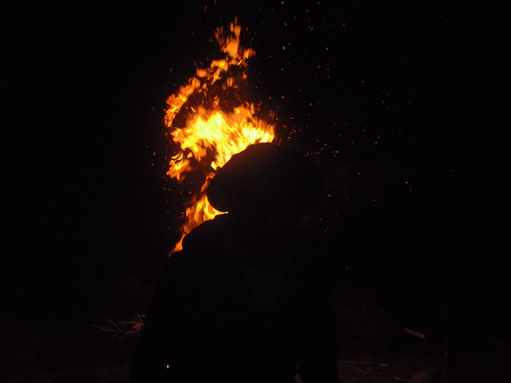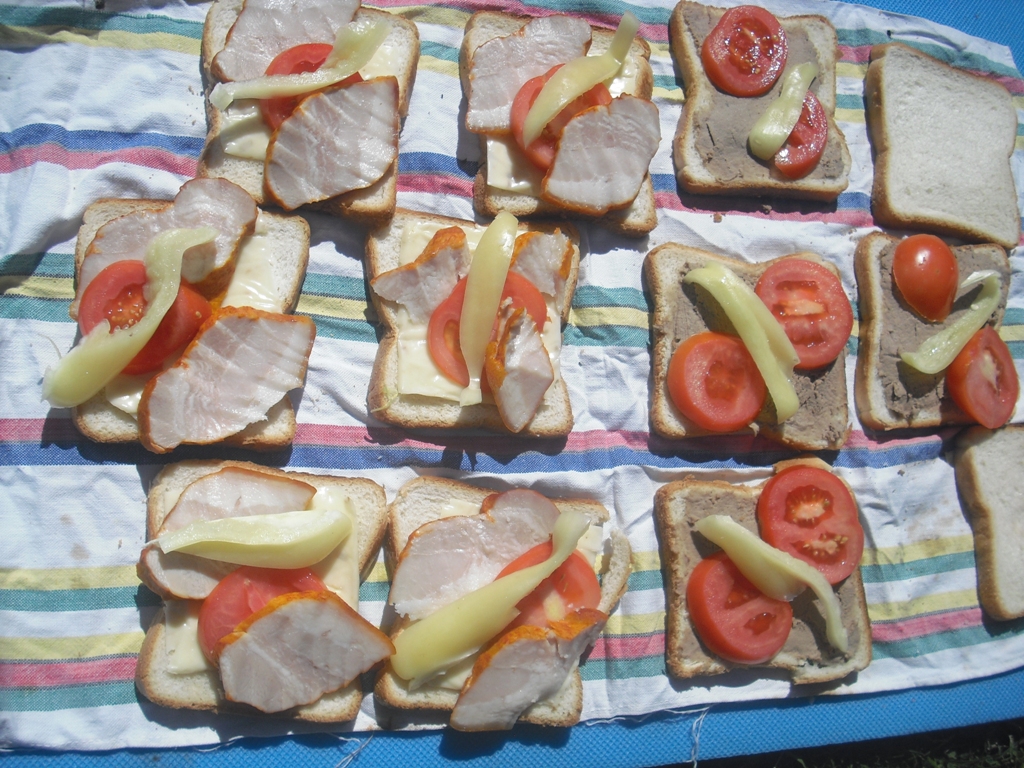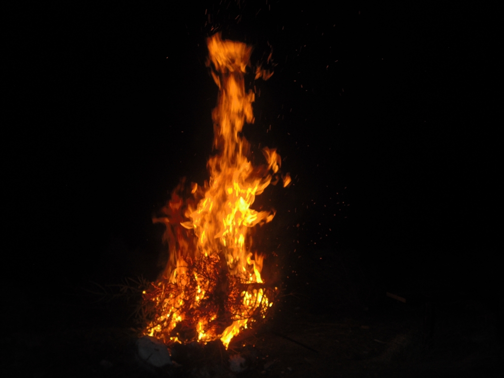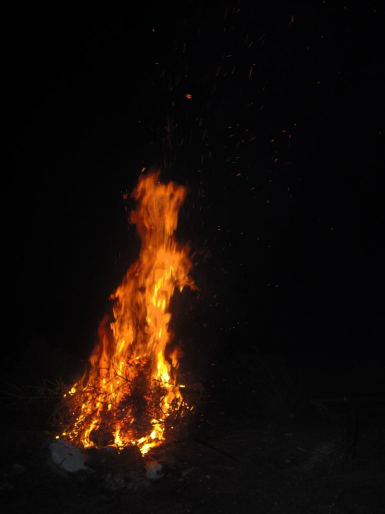 Ai ajuns la cabana, la refugiu, in locul stabilit ca punct final pentru ziua lunga de drumetie. Evident ca pentru seara primul lucru la care te gandesti este FOCUL. Inca de la descoperirea lui nu a schimbat numai alimentatia (de la crud la preparat termic), dar a impamantenit si socializarea (in jurul lui) ajutand astfel la formarea cuvintelor, a limbilor. Noi am continuat aceast progres al omenirii preparand cateva frigarui picante, jumari grase si delicioase si dezlegandu-ne limbile cu o palinca indulcita de-acasa cu miere de albine. Altfel te odinhesti pentru o zi noua de drumetii dupa cateva ore de vorba in jurul focului cu asa meniu. 😛