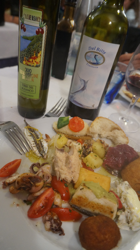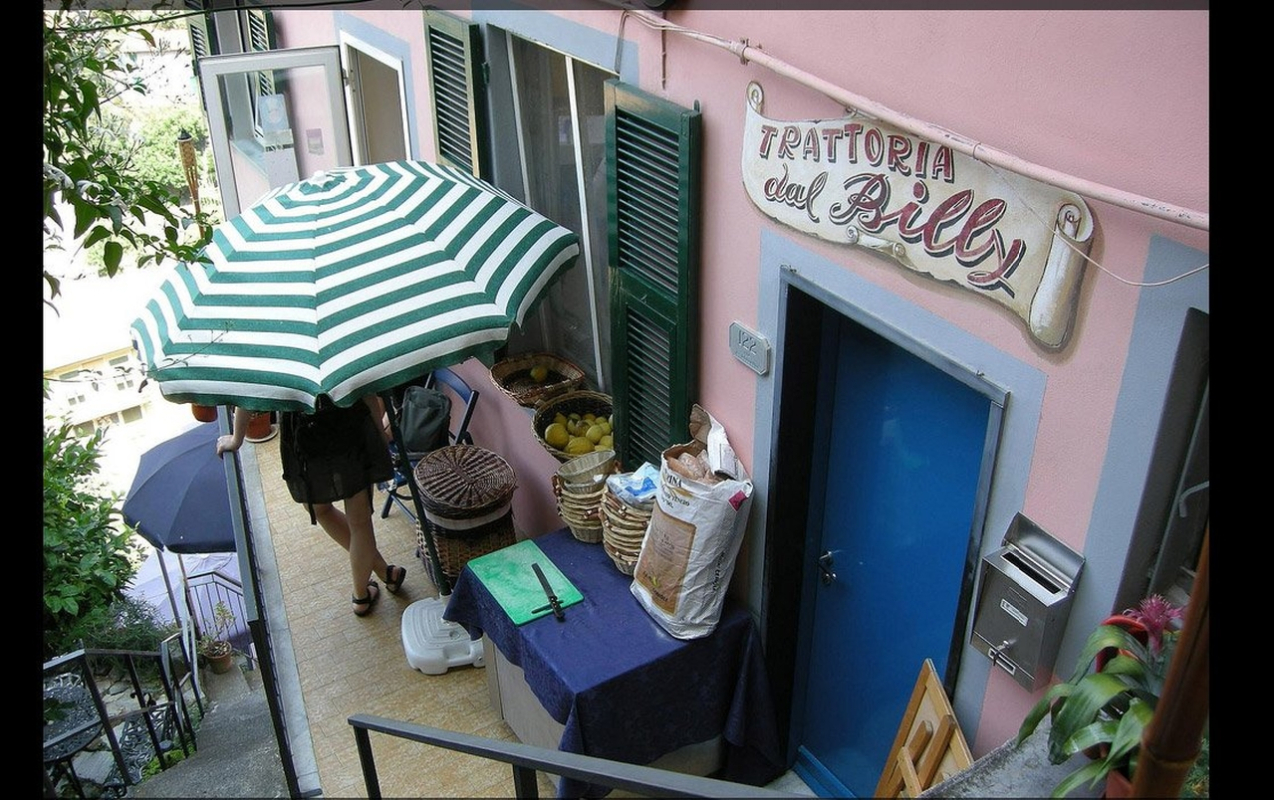 Cand am ajuns in prima zi, marea era agitata iar norii se plimbau deasupra ei aducand vesti de furtuna. Dupa ce am invatat Manarola ca-n palma, la sfatul lui Gigi, seara ne-am dus la Trattoria dal Billy. Era deja 8 si afara incepuse sa ploua. Trattoria dal Billy este un loc destul de mic asa ca faceti bine si rezervati o masa dinainte.