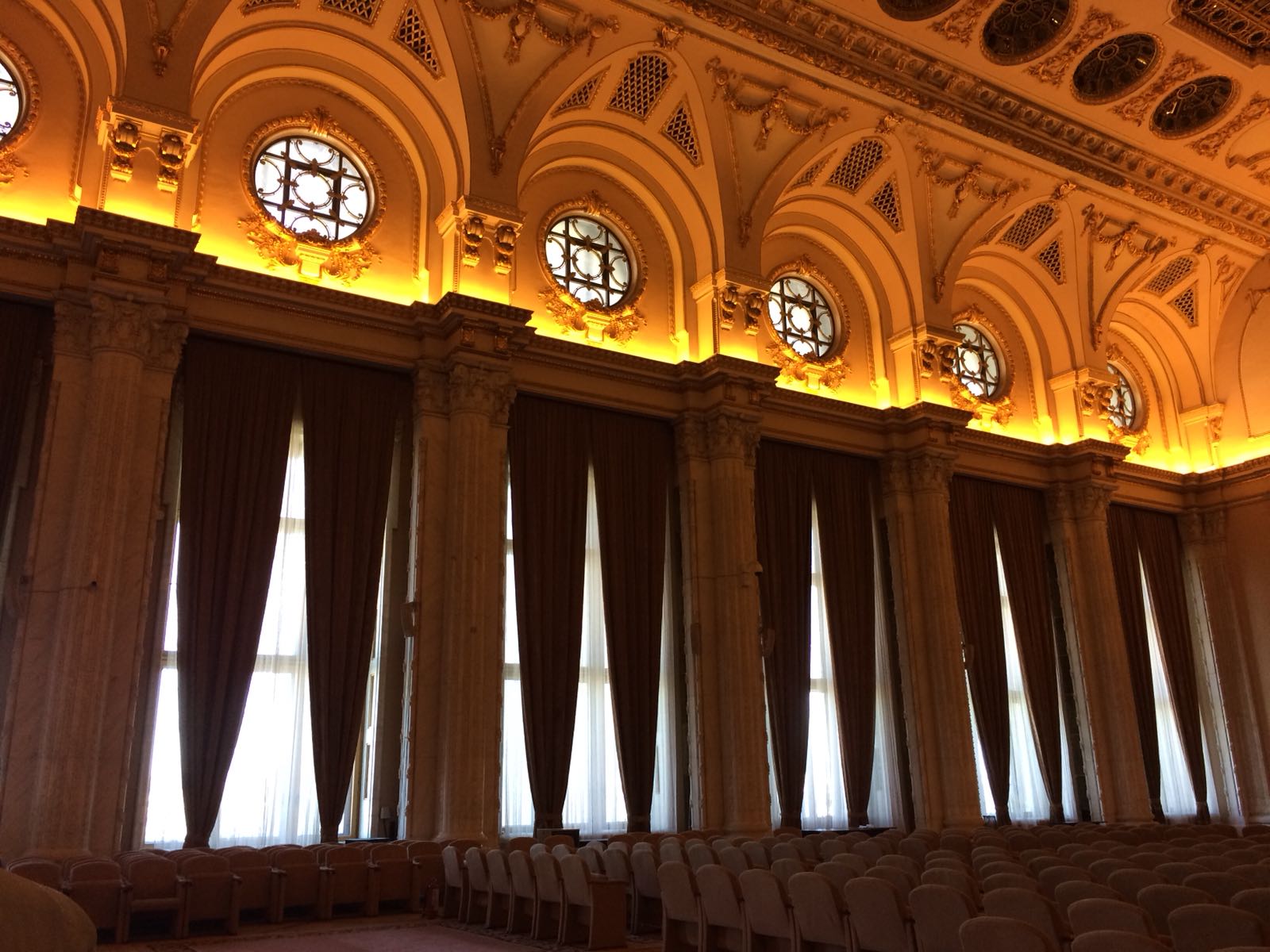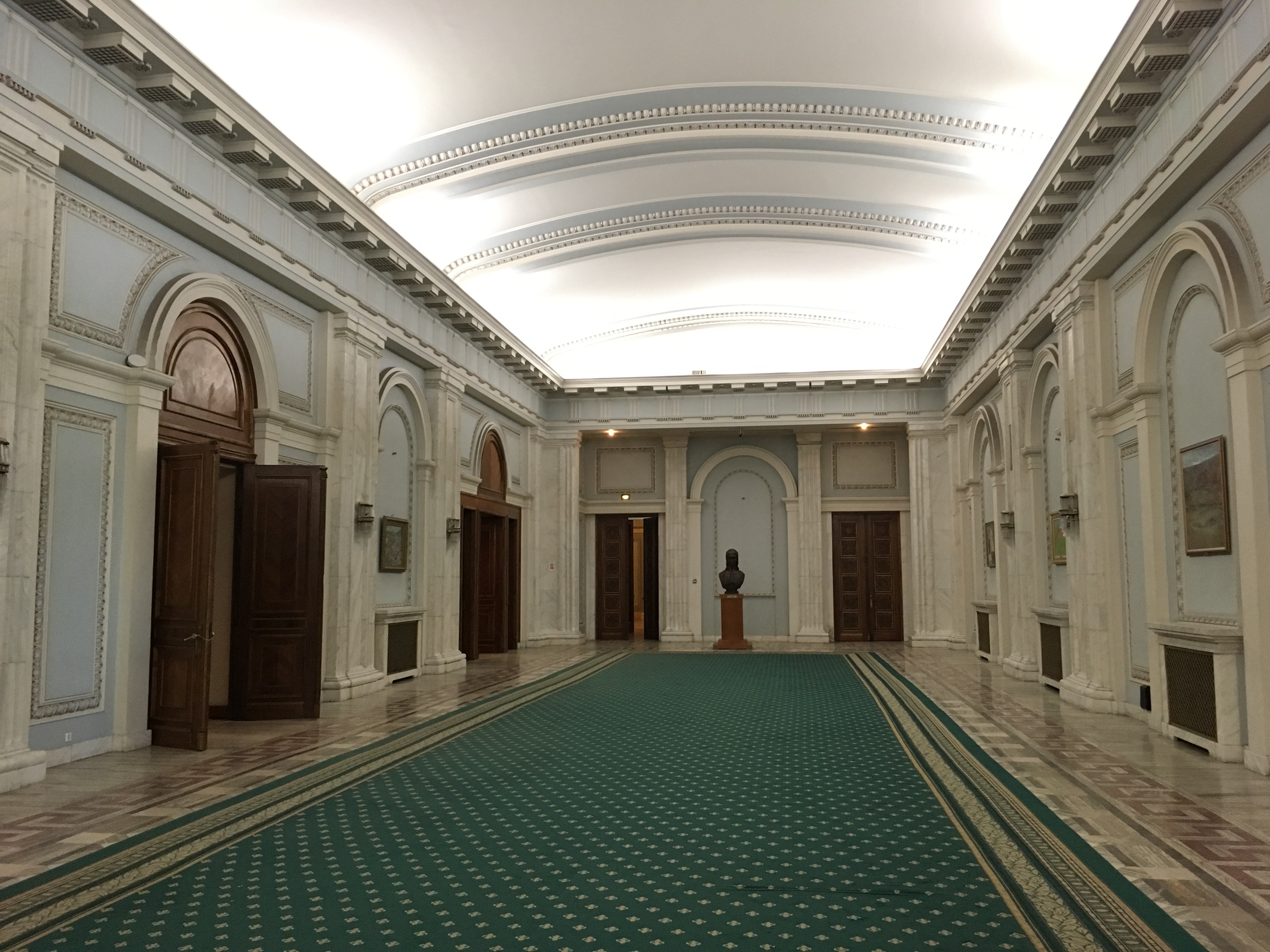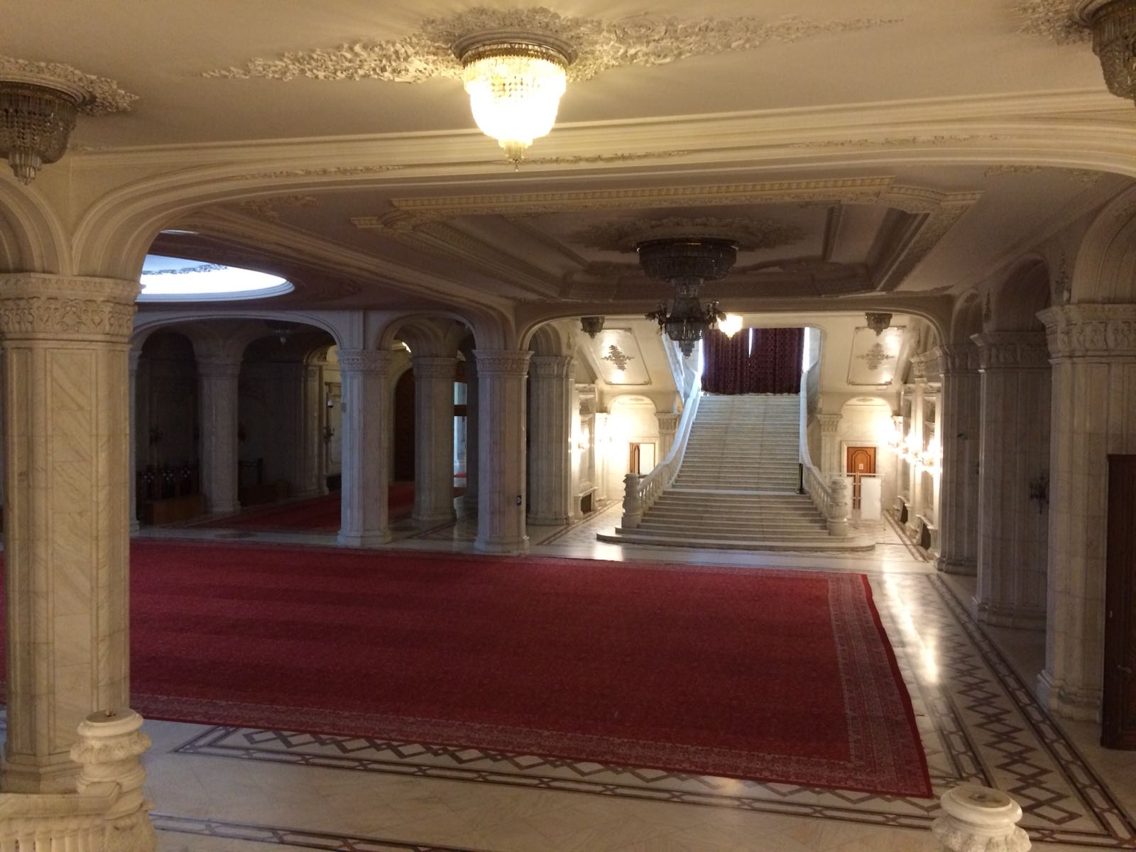 În fine, vei vizita cam 3% din toată cladirea noastră imensă, (noastră e iar o ironie), vei coborî și urca câteva sute de trepte (deși nu urci mai sus de etajul 1 al clădirii) și vei face in jur de 3,000 de pași. Din păcate nu se vizitează niciuna dintre sălile de sedință ale celor două camere (Senat și Camera Deputaților), subsolul sau alte etaje în afară de primul. De ce? Păi, dorm oamenii acolo!