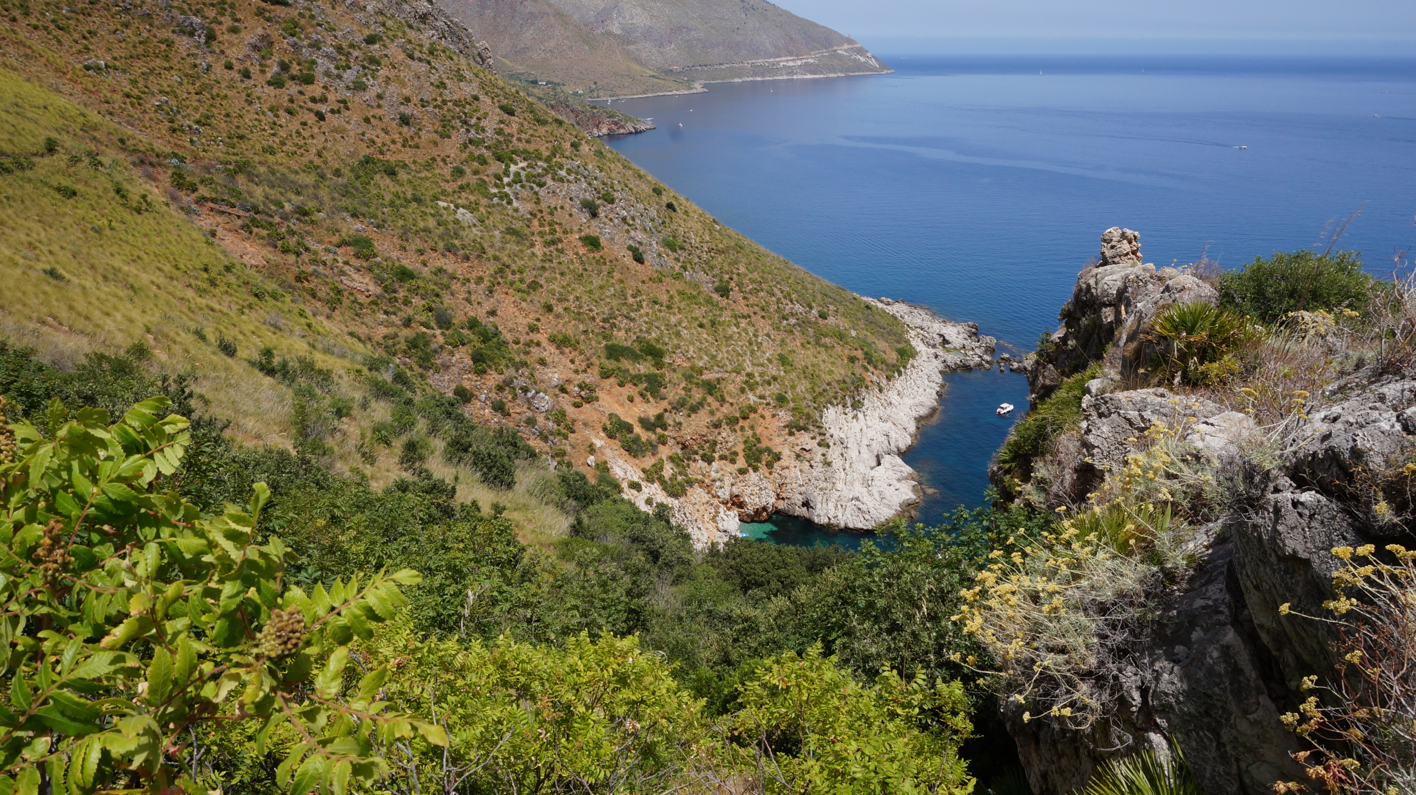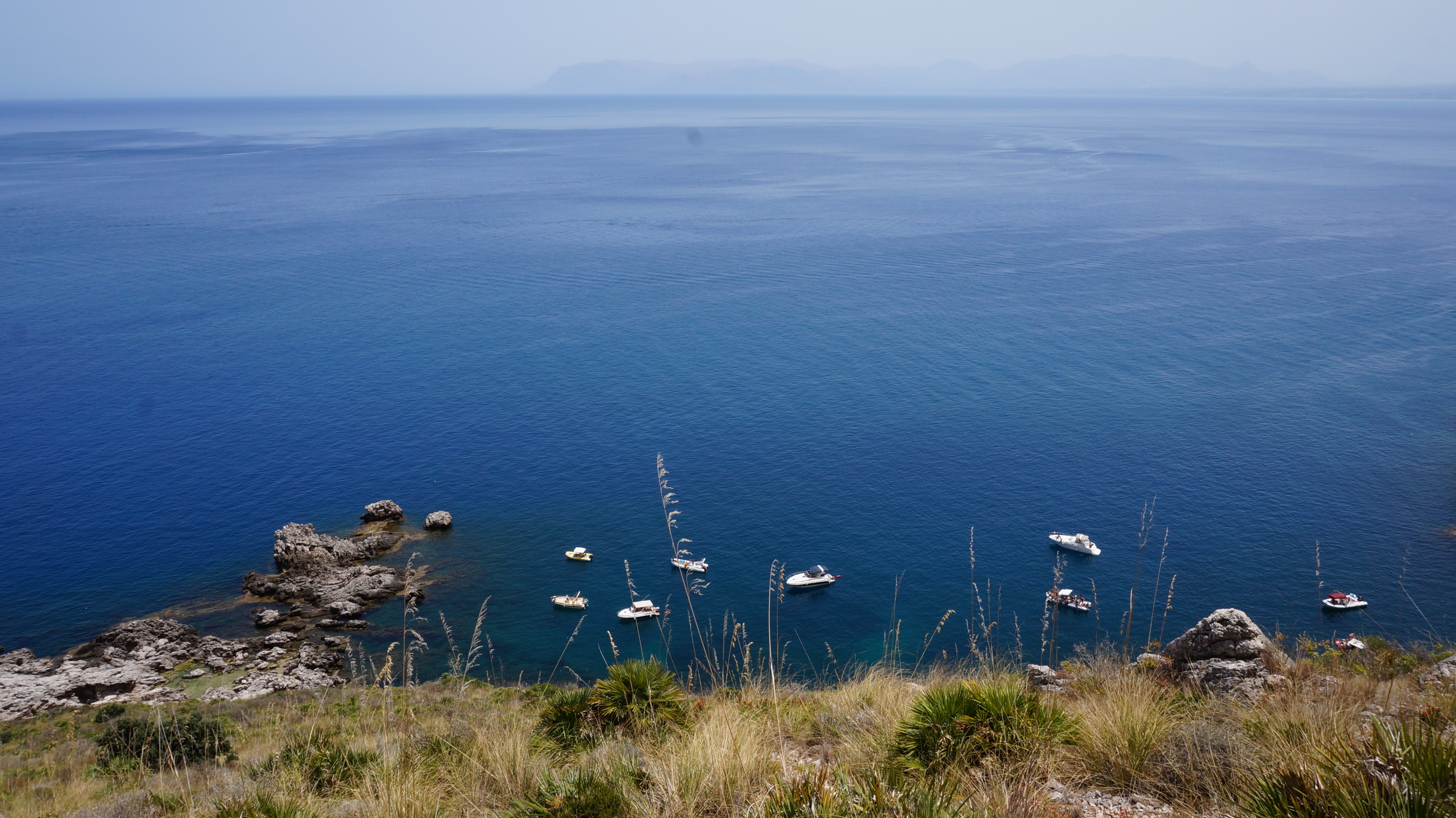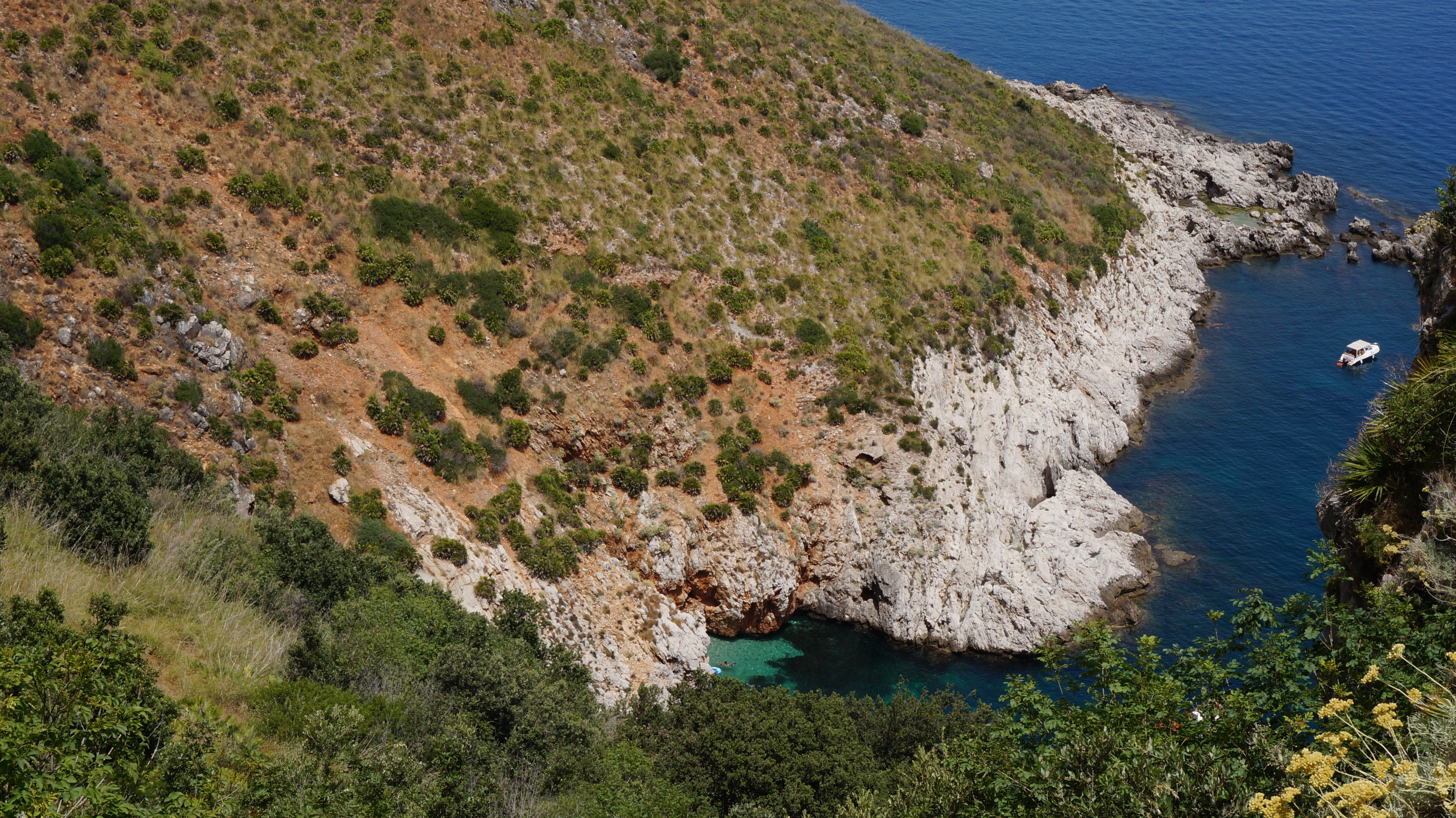 Am plecat a doua zi sa vedem rezervatia naturala Zingaro. Mda, si nu prea am plecat in zorii zilei ca sa putem face pe racoare cei 7 kilometri care te duc la niste plaje foarte frumoase, ci am plecat la 10 dimineata, fara apa si fara sa avem habar ca trebuie sa mergem 7 kilometri pana la plaje. Prostia sa plateste. Cred ca sunt niste plaje frumoase, dar noi am mers vreo doua ore printr-o caldura usturatoare, ne-am bronzat in dulcele stil tranctorist din prima zi si nu am facut nicio baie pentru ca drumul, atat cat am facut noi din el, nu cobora spre mare. Pedeapsa era si mai grea pentru ca puteai vedea apa langa tine, apa albastra si curata, racoroasa, apa care te chema la ea, dar tu ca prostul stateai sa te bata soarele pentru ca nu aveau cum sa cobori. Cum ziceam, prostia se plateste. Dupa ce ne-am mai revenit putin (si din prostie, sper), am oprit la Scopello sa facem totusi o baie. Acest loc este format din cateva case superbe, aflate in buza apei, in fata unei dintre ele fiind asezate trei randuri de sezlonguri. Apa de aici era un vis. Sincera sa fiu, putea sa fie o baltoaca obosita si tot ma aruncam in ea. Cand am intrat in apa am ajuns in rai si am stat acolo vreo 40 de minute. A fost perfect. In plus, am vazut si o caracatita pentru prima data in viata mea. Mi-a fost un picut frica, dar tot am stat 10 minute sa o spionez pana a decis sa se bage sub o piatra. Am stat la Scopello ore bune pentru ca rezervatia naturala Zingaro ne terminase.