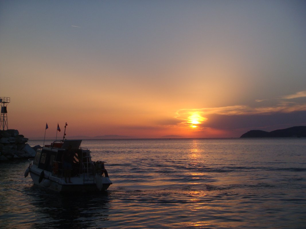 Thassos este o insula, a 12-a ca marime dintre comorile plutitoare cu care a fost binecuvantata Grecia. Bucuria mare legata de ea este faptul ca poti ajunge linistit in Thassos cu masina fara sa faci 10 zile pe drum si sa pui 3 rezervoare. Daca pleci la 5-6 dimineata, ai toate sansele ca pe la pranz sa stai cuminte cu un Mythos in mana si cu soarele arzandu-ti fata. Partea mai putin placuta este trecerea pe la vecinii bulgari prin niste sate in care singurul lucru care-ti trece prin minte este sa nu cumva sa faci pana. Cum ai trecut granita, pe un drum frumos ca-n palma de zici ca-i treaba nemteasca, nu greceasca, ajungi pana in locul de unde trebuie sa iei ferry boat-ul spre Thassos. Esential inainte de imbarcare este sa cumparati o punga de saratele mai mari, biscuiti, chips-uri, ma rog, mancaruri d-astea sanatoase care stau bine in desaga calatorului. Principala atractie de pe ferry este hranirea pescarusilor care aproape vin sa-ti ia merindele din palma, atata-s de obisnuiti cu turistii si pofticiosi dupa mancare. Nu va uitati numai in sus, mai aruncati si un ochi spre apa pentru ca s-ar putea sa aveti norocul sa zariti delfini sau niste meduze uriase ca niste torturi cum numai acolo am vazut.