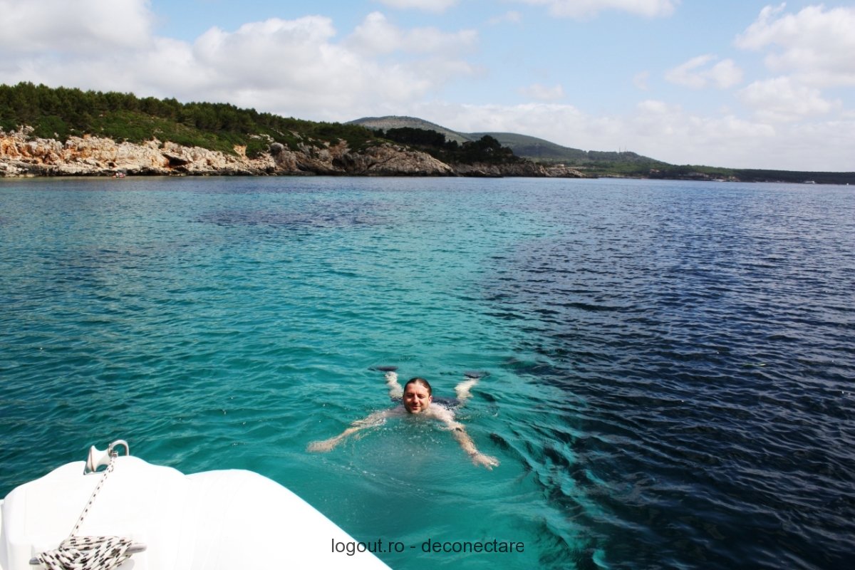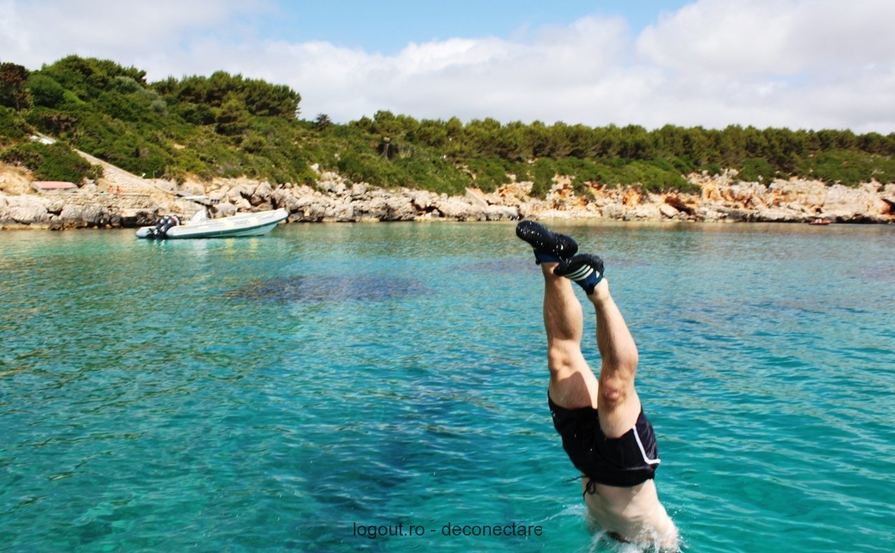 Prima oprire a fost la Capo Galera, un loc unde se fac scufundari. Acolo am vazut pentru prima data cum arata apele din Sardinia cu adevarat. Pestii se vedeau de parca nu ar fi inotat la zece metri, ci ca si cum pluteau intr-un cer de cristal, atat de aproape de colacul nostru deghizat in barca incat aveai impresia ca poti sa-i atingi cu mana. Am aruncat ancora si ne-am scaldat pentru prima data in cerul acela lichid. Experienta avea sa se repete la fiecare petic de apa pe care-l gaseam mai atragator. Linistea tarmului care se oprea brusc in ziduri de stanca era tulburata doar de tipetele pescarusilor. Sunt anumite locuri in care simti toata greutatea stancii apasand atat de tare pe umerii tai incat te infiori.